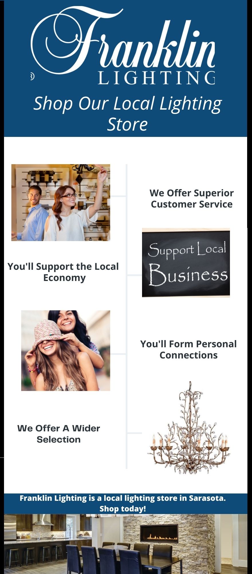 Franklin Lighting is proud to be your local lighting store of choice in Sarasota and Bradenton. We’ve been family-owned and operated for three generations, and we’re proud to be serving this community. Below, we’ll take a look at why you should shop at our local lighting store. Stop by our showroom today!